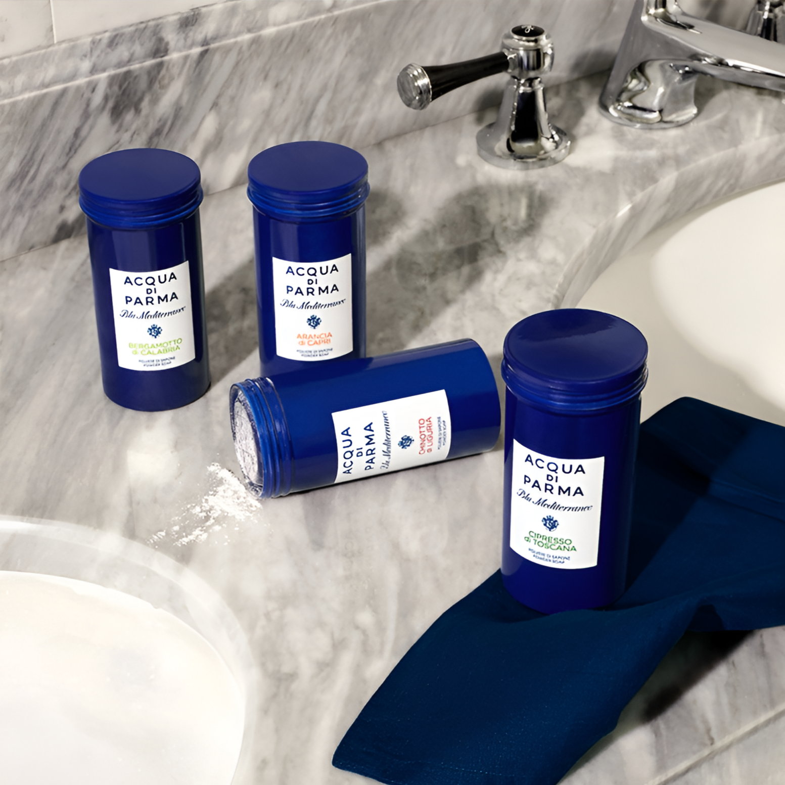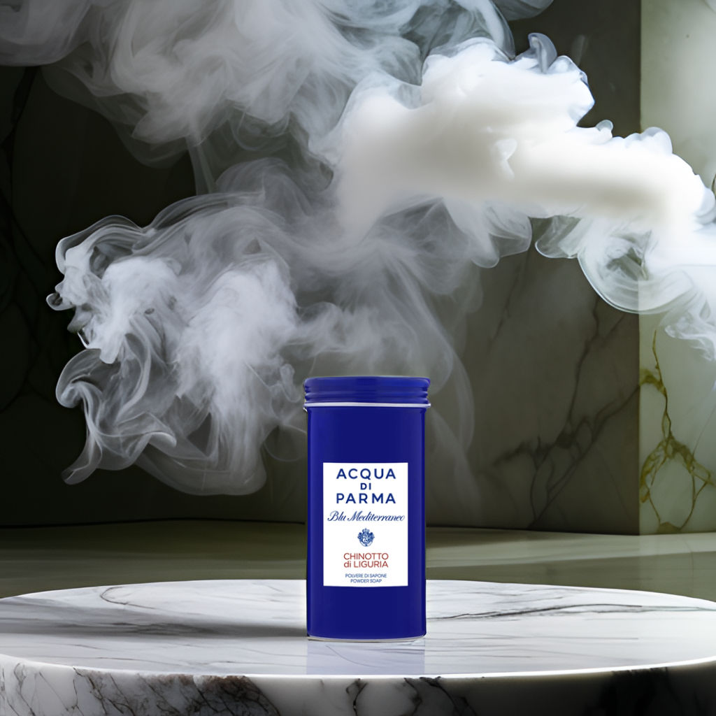 Acqua Di Parma's Blu Mediterraneo Chinotto Di Liguria Powder Soap smells like a fresh Italian coast breeze – a blend of invigorating citrus and serene sea notes.