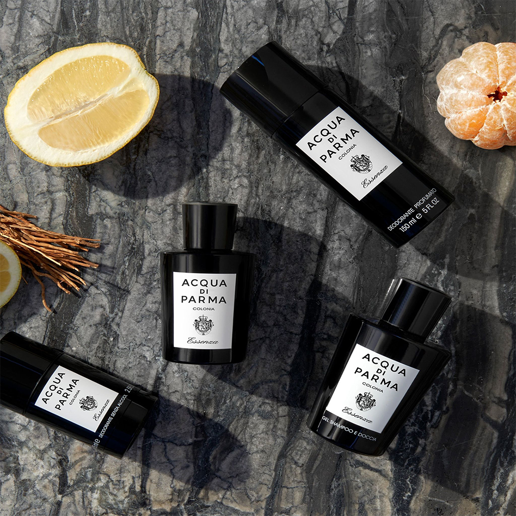 Experience elegance with Acqua Di Parma Colonia Essenza, a luxury scent in a bespoke tuxedo bottle.