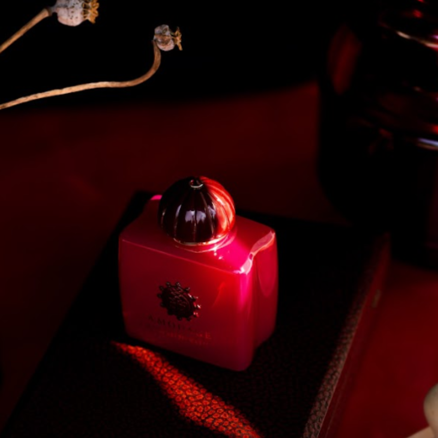 Experience Amouage Crimson Rocks, a luxurious scent inspired by Oman's mountains, evoking nature's beauty with a deep rose essence.