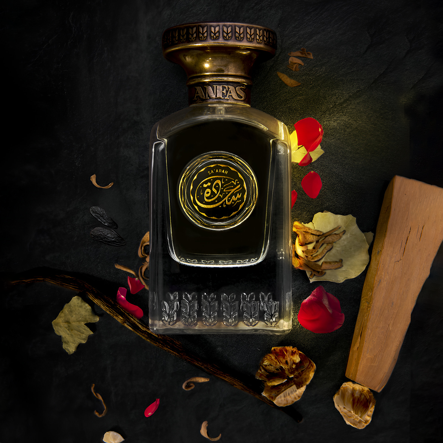 Unveil the essence of true elegance with Anfas Sa'Adah EDP, a fragrance that celebrates the art of passion and desire.