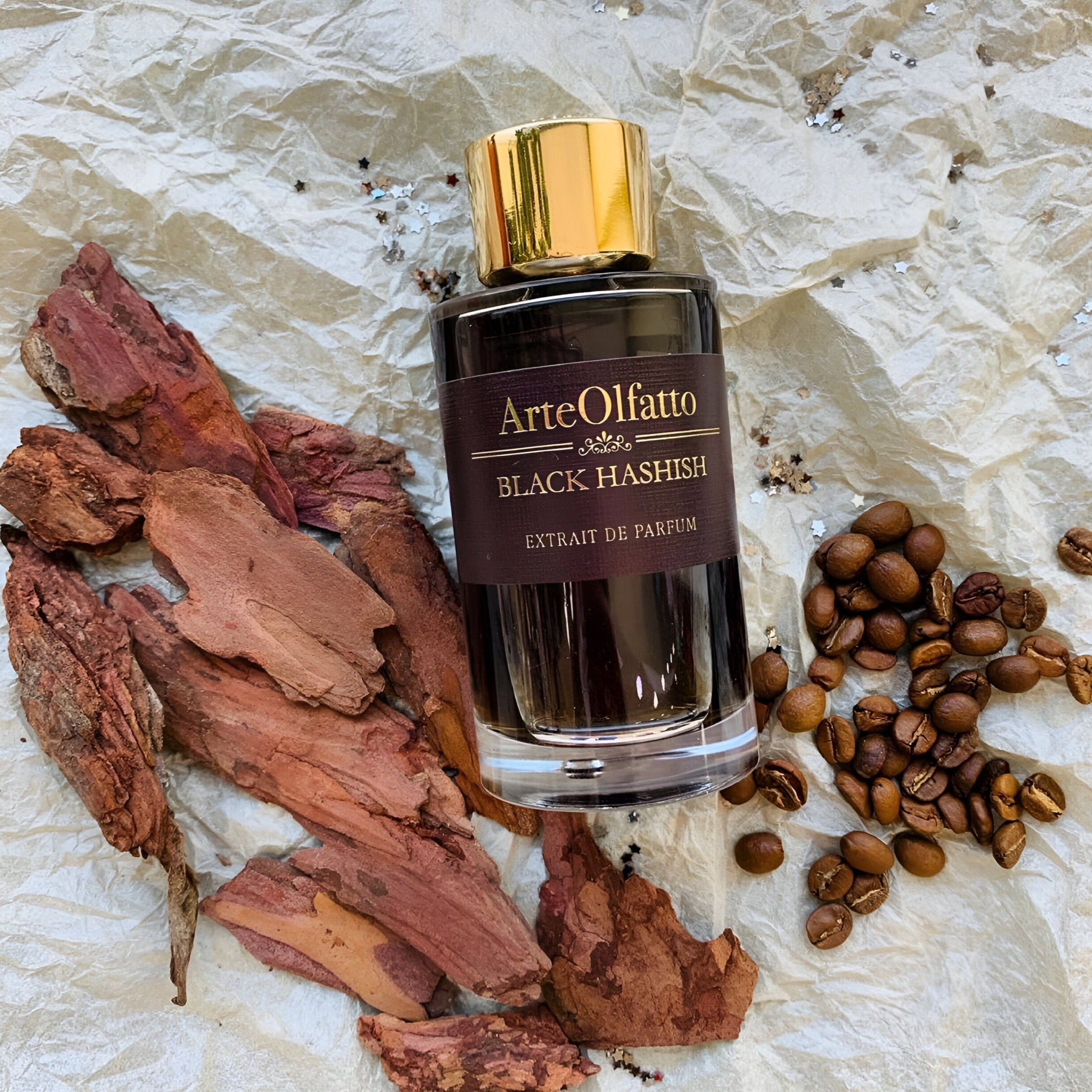 Arteolfatto Black Hashish Extrait De Parfum smells like a seductive blend of smoky incense, rich coffee and tobacco, enveloped in the luxurious warmth of amber, cedar, and sandalwood.
