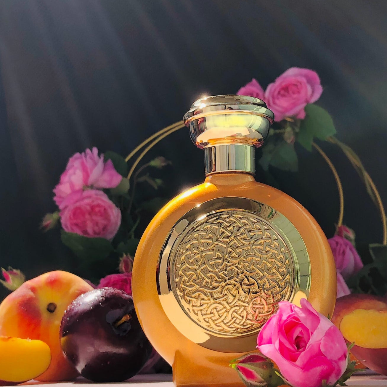 - Heart of spice, florals, and smooth amber.