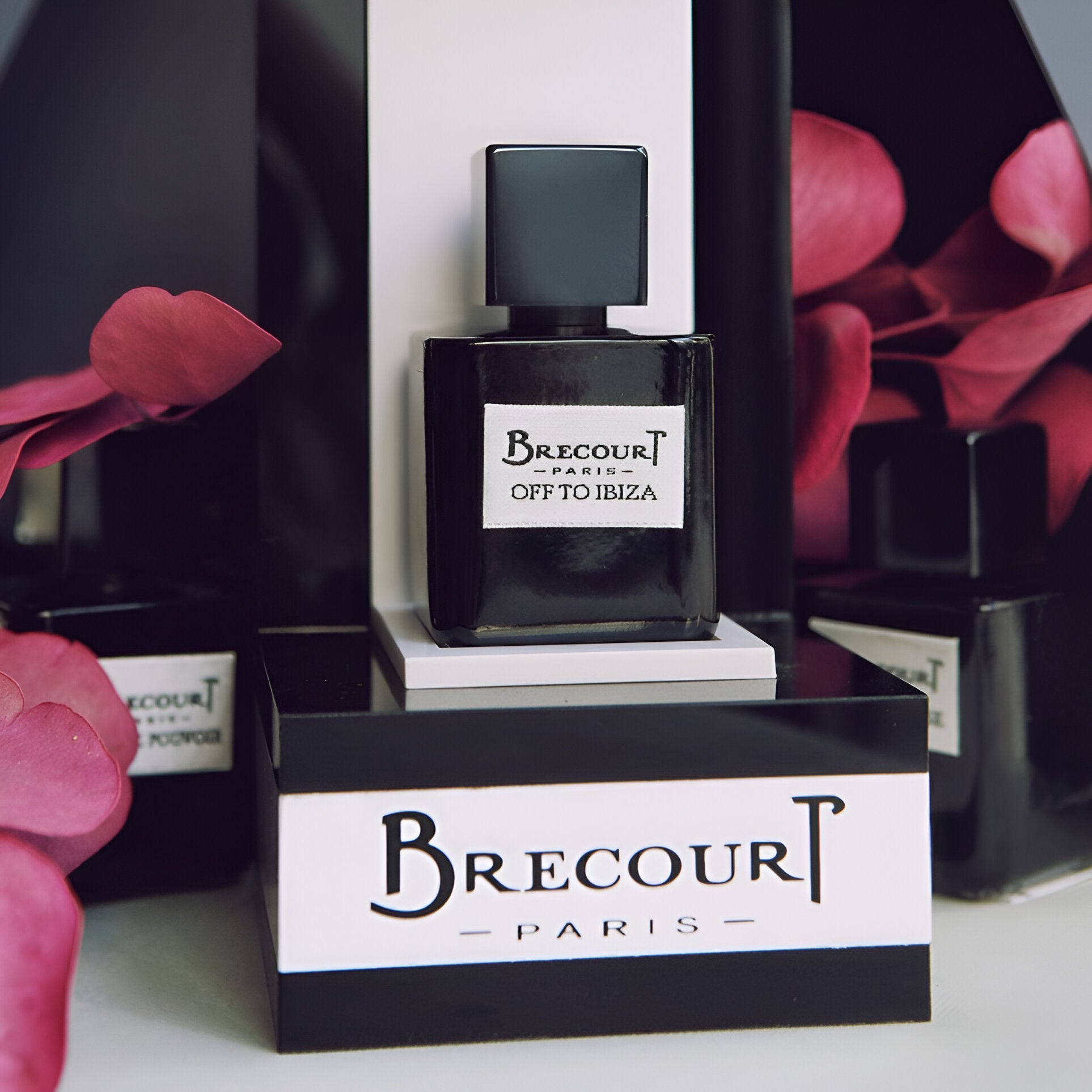Brecourt Off To Ibiza EDP captures the carefree spirit of Ibiza with floral-aquatic notes and a subtly fruity scent, celebrating 1980s women's independence and chic elegance.