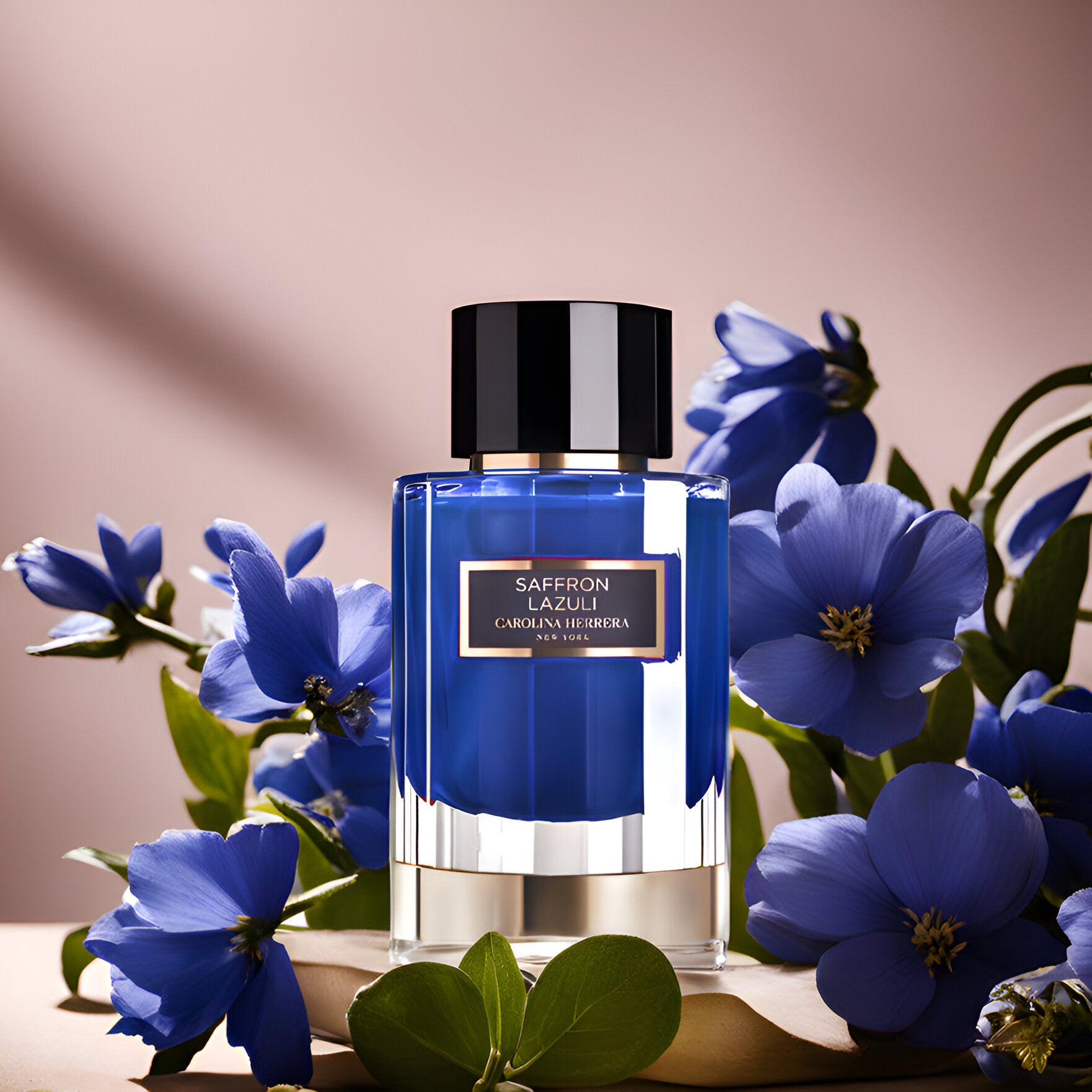 Carolina Herrera's Saffron Lazuli EDP, a unisex amber spicy scent from 2020, inspired by lapis lazuli, exudes sophistication.