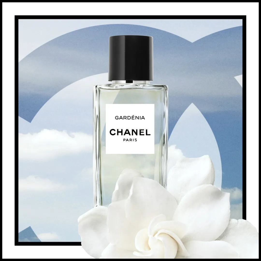 Experience the luxurious white floral scent of Chanel Gardenia, a tribute to Coco Chanel's beloved blooms with jasmine and orange essence.