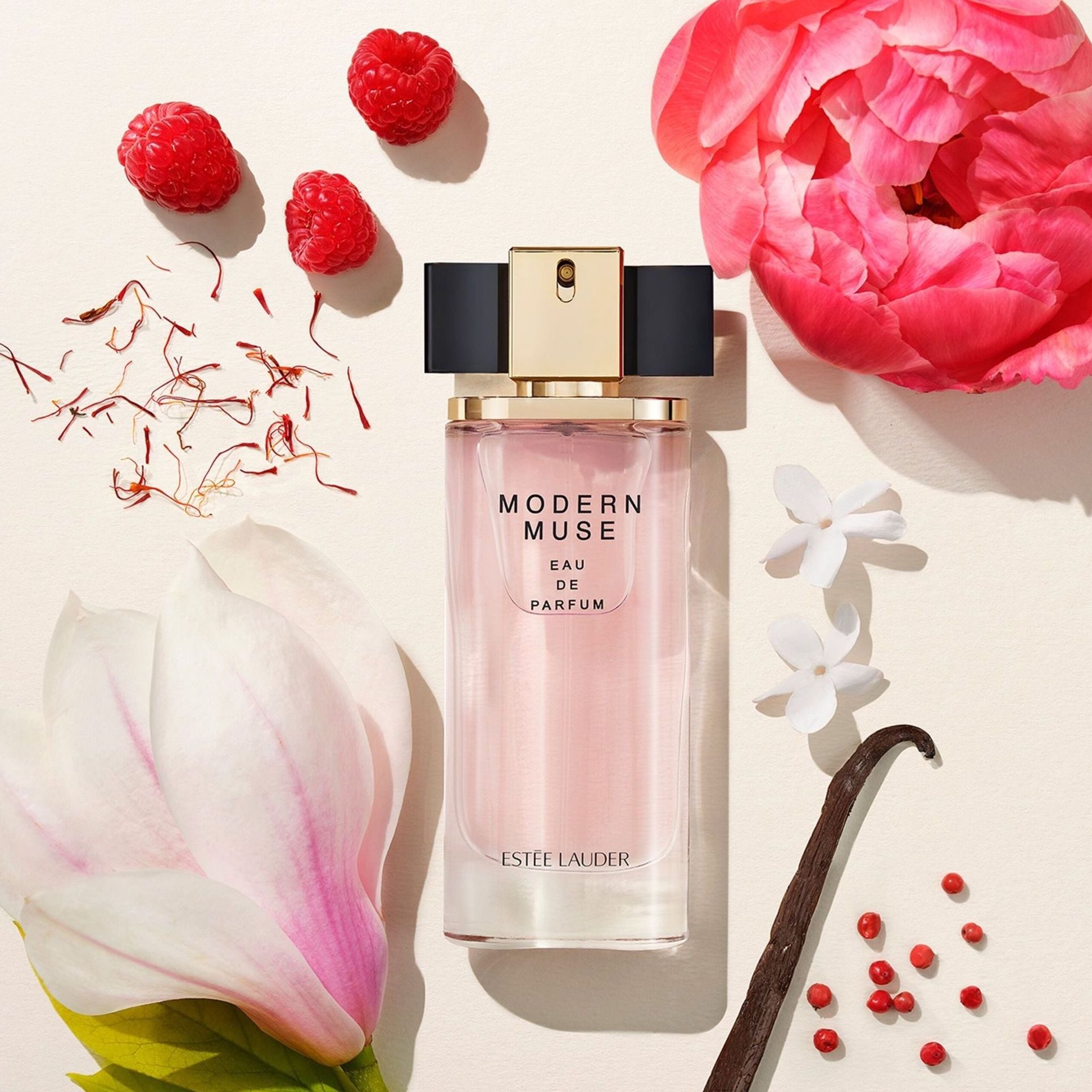 Estee Lauder Modern Muse EDP smells like a blend of sparkling jasmine florals and deep, sensual woods.