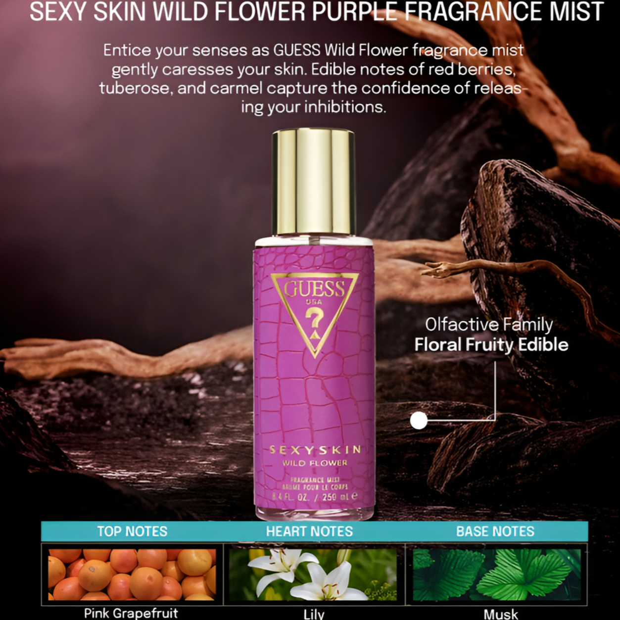 Awaken a wild burst of femininity with GUESS Sexy Skin Wild Flower Body Mist.