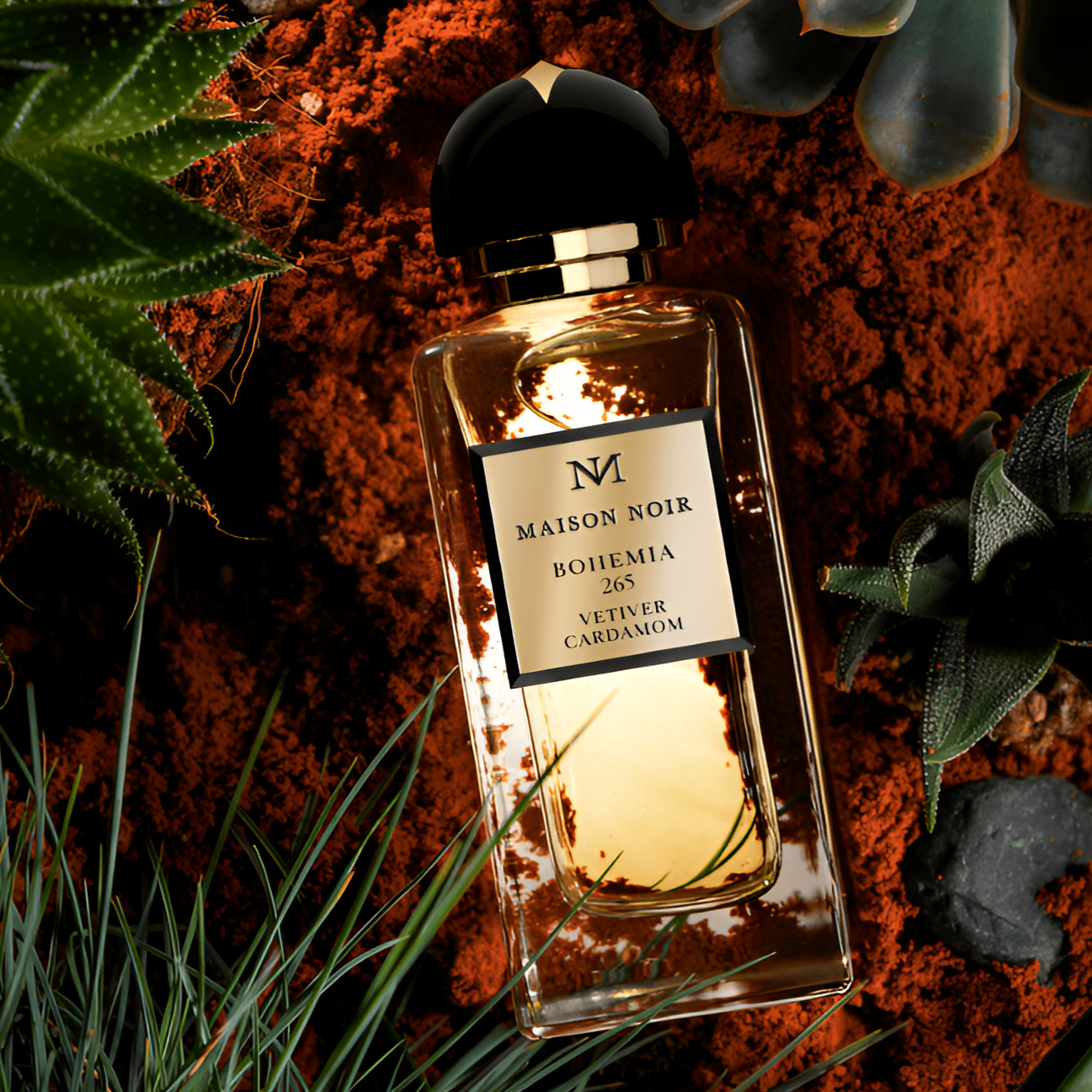 Explore Maison Noir Bohemia 265 EDP: A unisex, Amber Woody scent blending tradition and modernity for an empowered, bohemian aura.