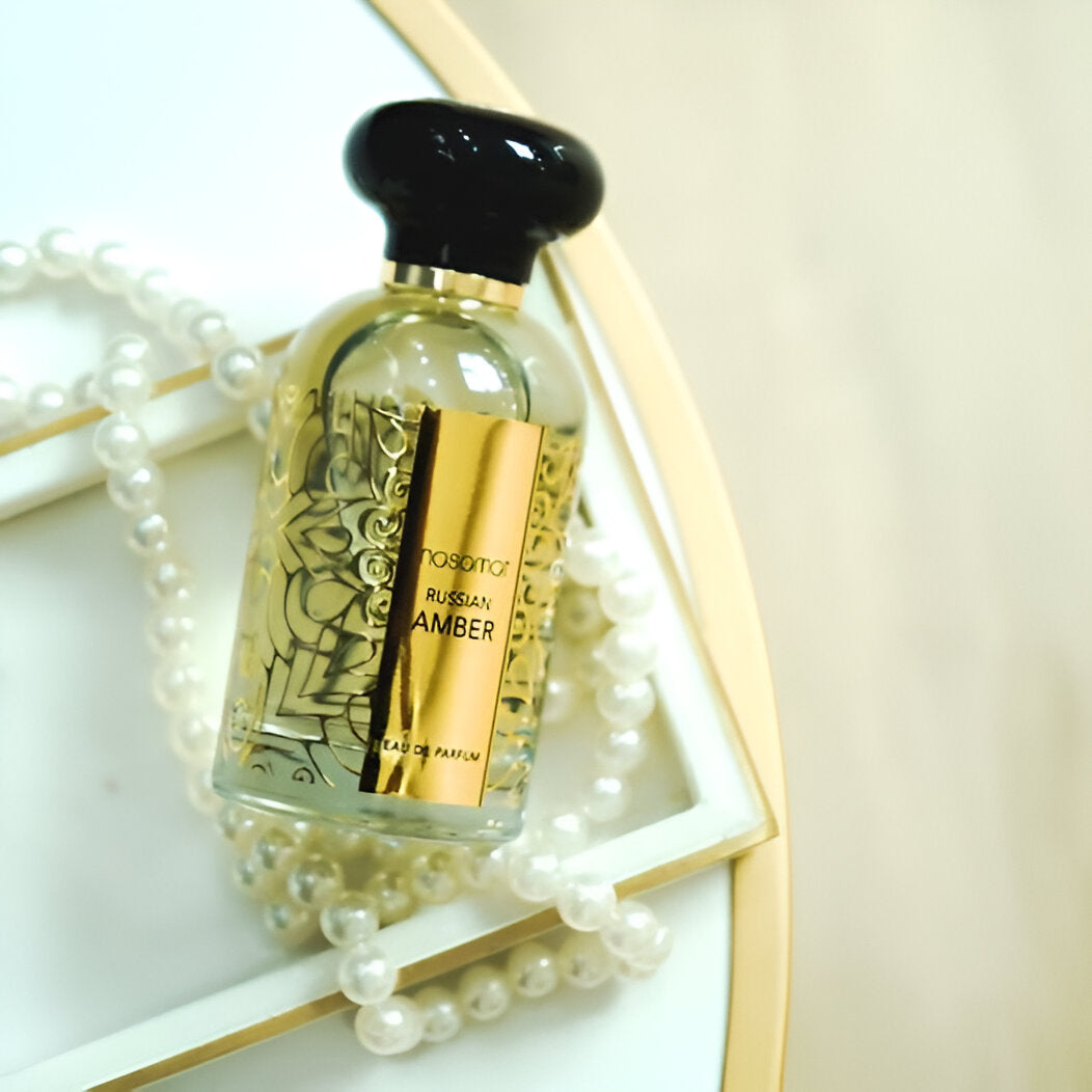 Experience Nasamat Russian Amber Gold EDP: a unisex fragrance blending citrus, amber, vanilla with a touch of diverse inspirations.