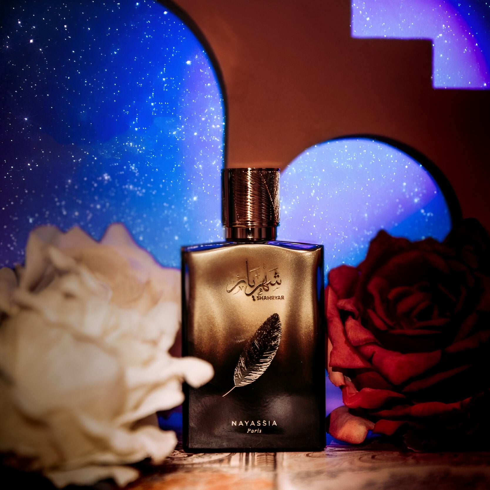 Nayassia Shahryar EDP exudes a unisex, mystical scent with a fresh blend of saffron and bergamot, reminiscent of ancient Eastern royalty and the enchanting tales of 1001 nights.
