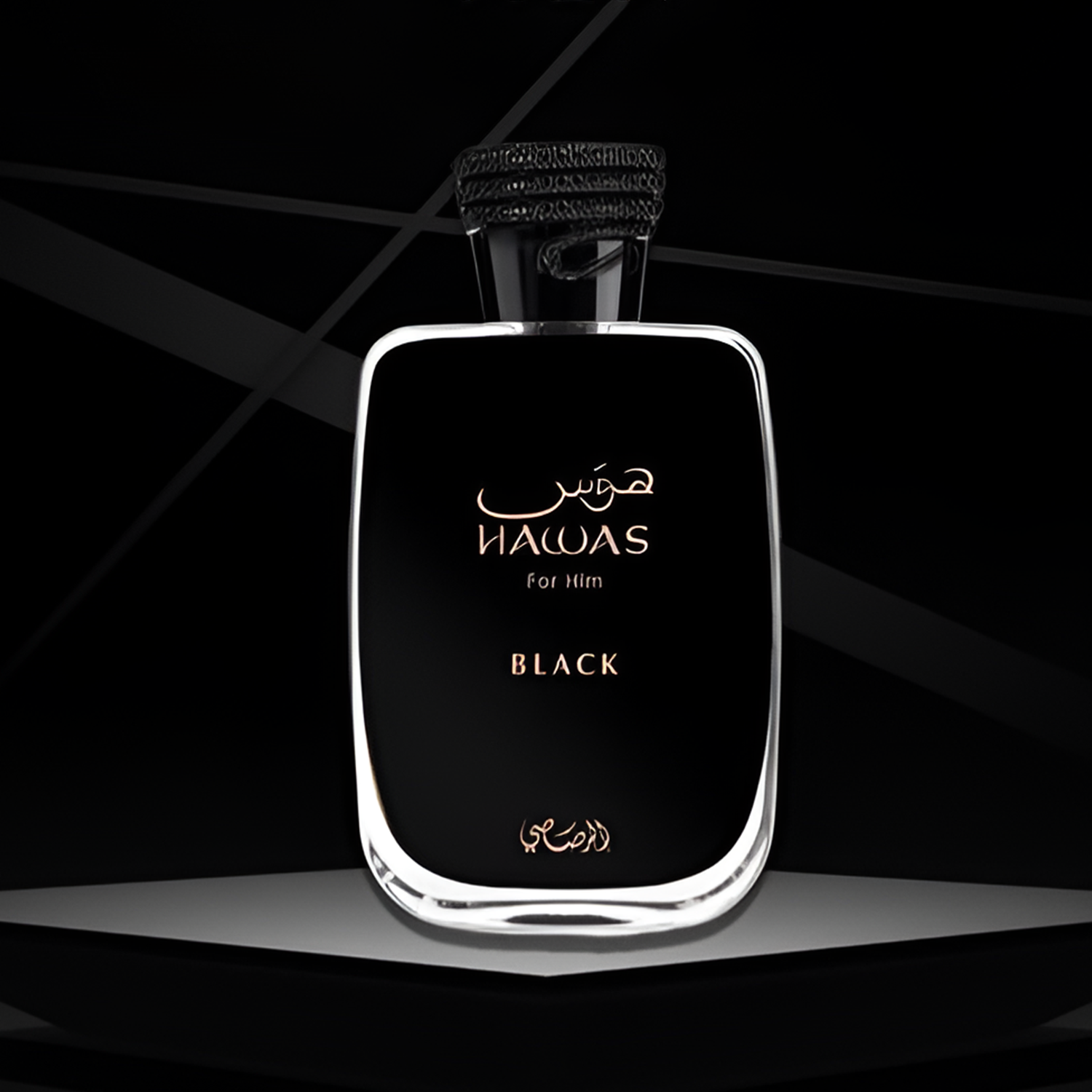Rasasi Hawas Black EDP offers a sophisticated scent with notes of bergamot, apple, and musk, exuding confidence and allure.
