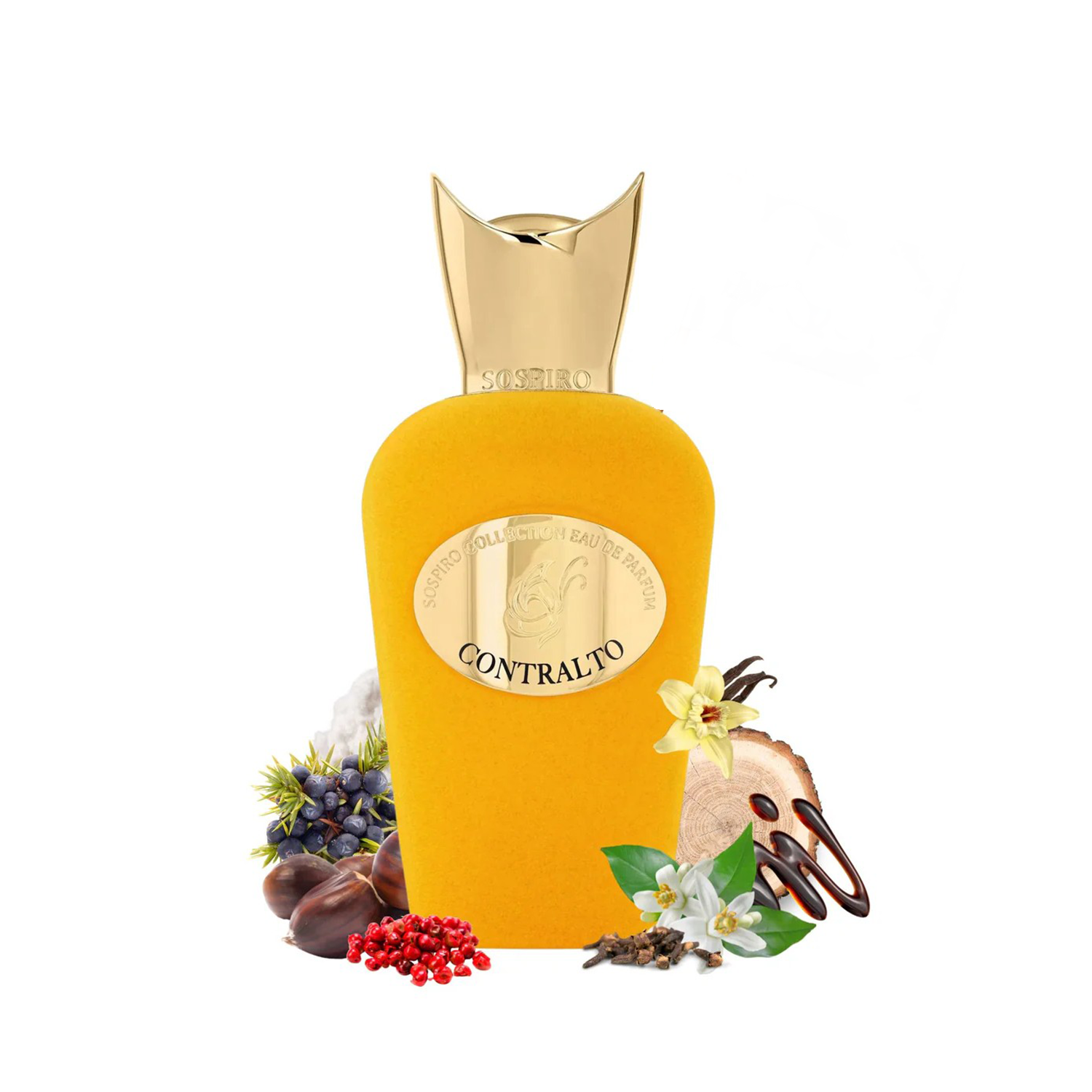 Sospiro Contralto EDP smells like a sweet-spicy floral with pink pepper, cloves and orange blossom opening into smoky chestnut, guaiac wood and juniper heart, finishing on creamy vanilla, Peru balsam and musky cashmeran for a bold, resilient feminine signature.