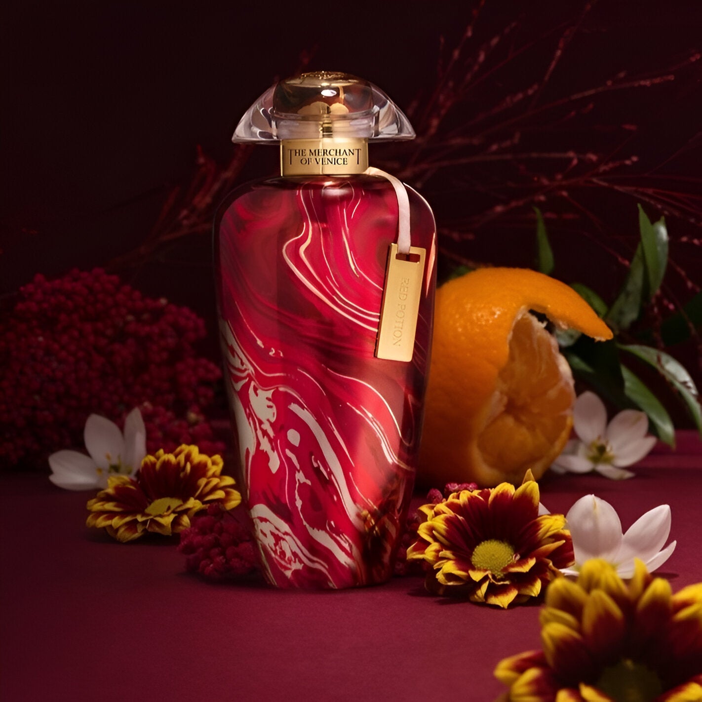 The Merchant Of Venice Murano Collection Red Potion EDP exudes a sensual, sweet-floral scent that captures the sophisticated charm of Venetian nobility.
