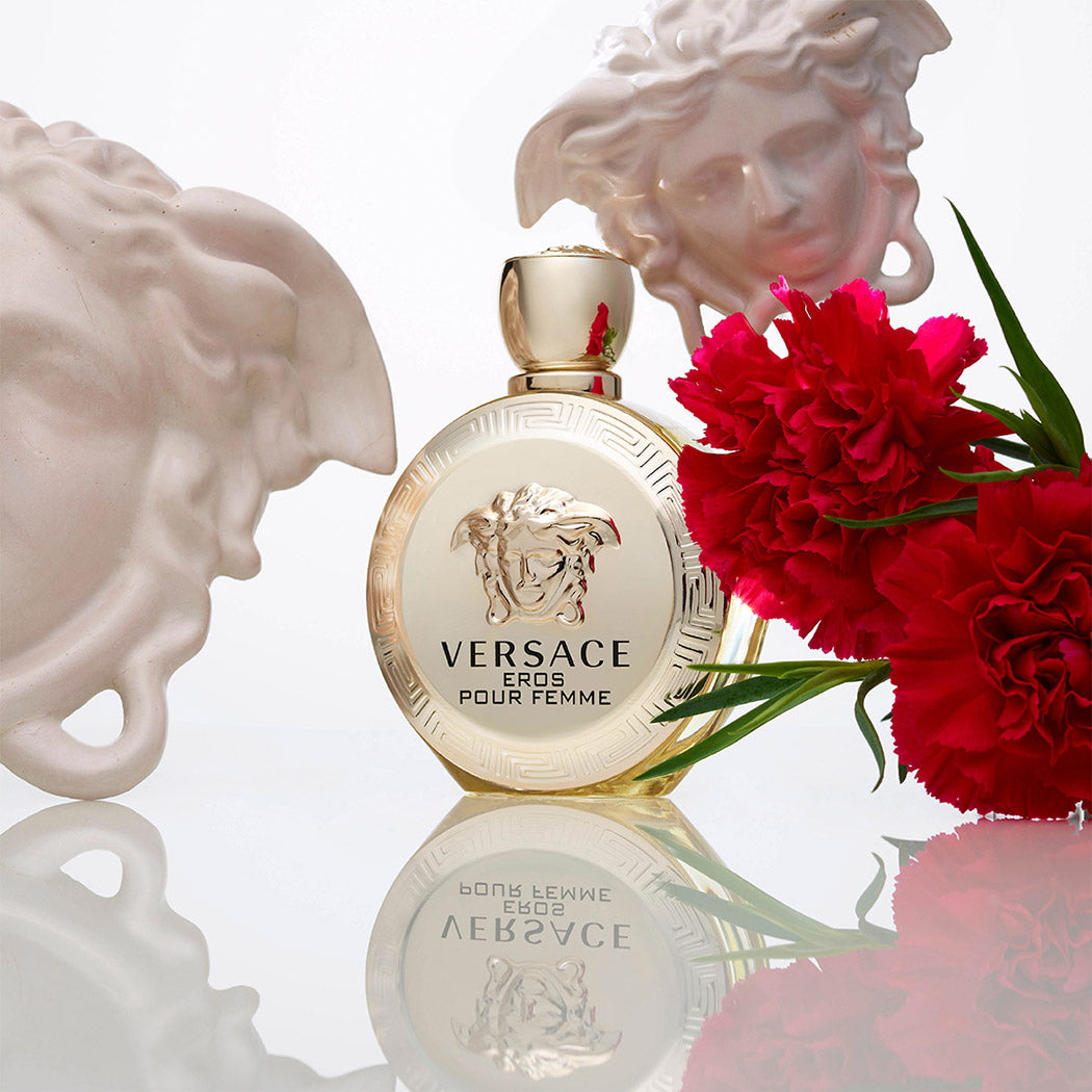 Eros pour Femme Eau de Toilette is a new sensual and addictive freshness based on the combination of notes of fine citrus fruits, like Sicilian lemon and mandarin, and crisp fruity notes, like raspberry and white currant.